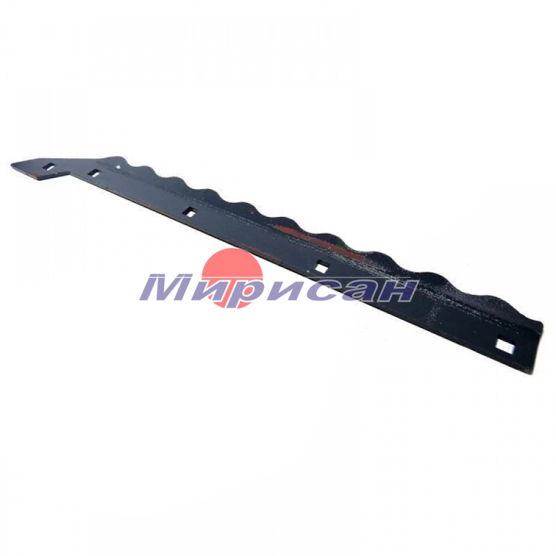 Планка правая ротора в виде длинной изогнутой стальной пластины с отверстиями для крепления для зерноуборочных комбайнов Claas Lexion. Длина - 478 мм, общая ширина - 57 мм.